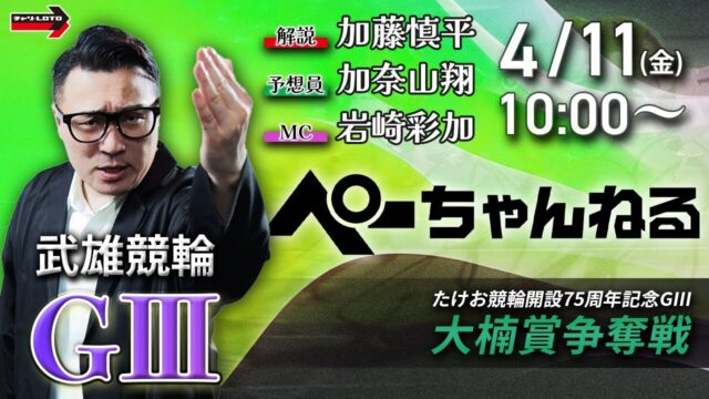 競輪動画 チャリロト公式競輪番組 加藤慎平の「ぺーちゃんねる」4/13(日)【最終日】#武雄競輪場 大楠賞争奪戦 [GⅢ] 2025年4月5日 admin_master https://public-gambling-ch.com/wp-content/uploads/2021/09/public-gamble-white.png 公営競技予想まとめ|ギャンブル速報 チャリロト公式競輪番組、加藤慎平の「ぺーちゃんねる」です。 当チャンネルでは株式会社チャリ・ロト専属の競輪解説員・加藤慎平さんを中心に、 …