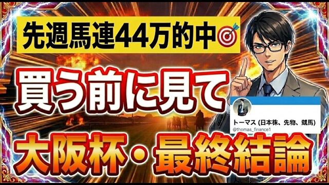 競馬動画 【競馬】先週44万的中のトーマス奇跡の予想!馬券買う前に見て!2026年大阪杯予想。 2026年4月4日 admin_master https://public-gambling-ch.com/wp-content/uploads/2021/09/public-gamble-white.png 公営競技予想まとめ|ギャンブル速報 中央競馬の予想動画です。 ※ギャンブルを推奨するものではありません。ギャンブルは百円単位で余剰資金で節度を持って楽しみましょう。 トー …