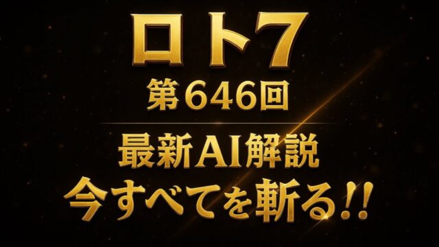 宝くじ 【ロト7】【AI解説】【緊急】今すべてを斬る!第646回ロト7を解説!! 2025年10月2日 admin_master https://public-gambling-ch.com/wp-content/uploads/2021/09/public-gamble-white.png 公営競技予想まとめ|ギャンブル速報 第646回ロト7の予想動画です。前回の並び(前半の入り・20番台の並び・30番台の活発ゾーン)から“次に効く”サインだけを抽出し、前半は …