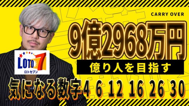 宝くじ 【宝くじ/ロト7第662回】キャリー9億2968万円で億り人を目指す理由|注目の6数字「4・6・12・16・26・30」 2026年1月29日 admin_master https://public-gambling-ch.com/wp-content/uploads/2021/09/public-gamble-white.png 公営競技予想まとめ|ギャンブル速報