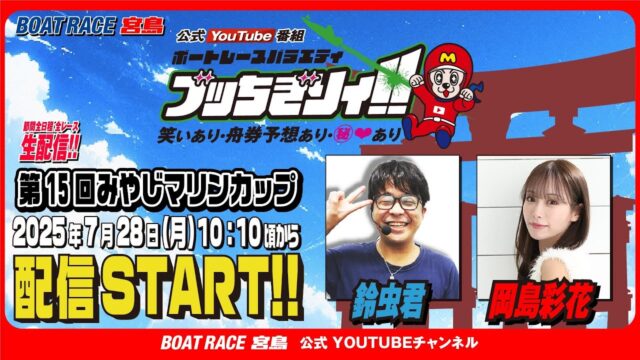 競艇動画 【ボートレース宮島 公式YouTube番組】 ボートレースバラエティ “ブッちぎりィ!!”【鈴虫君&岡島彩花】 2025年7月22日 admin_master https://public-gambling-ch.com/wp-content/uploads/2021/09/public-gamble-white.png 公営競技予想まとめ|ギャンブル速報