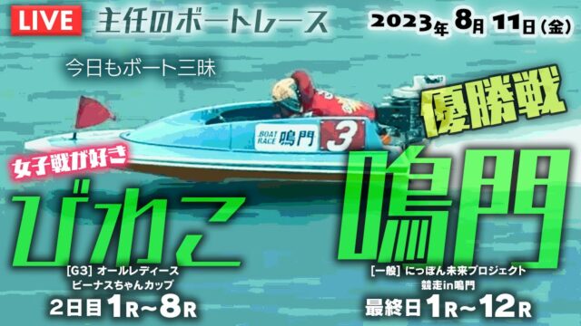 競艇動画 【LIVE】8月11日(金・祝)ボートレース鳴門&びわこ 1R~12R【今日もボート三昧!】 2023年8月11日 admin_master https://public-gambling-ch.com/wp-content/uploads/2021/09/public-gamble-white.png 公営競技予想まとめ|ギャンブル速報