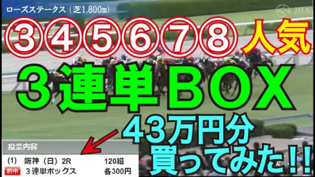 競馬動画 【競馬検証】43万投資!3連単6頭BOX③④⑤⑥⑦⑧人気の6頭で買ってみた! 2023年10月17日 admin_master https://public-gambling-ch.com/wp-content/uploads/2021/09/public-gamble-white.png 公営競技予想まとめ|ギャンブル速報