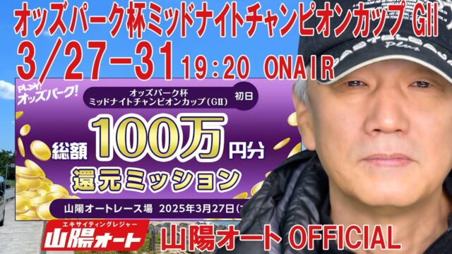 オートレース動画 オートレース ライブ オッズパーク杯ミッドナイトチャンピオンカップ 1日目20250327-31 山陽オート 2025年3月26日 admin_master https://public-gambling-ch.com/wp-content/uploads/2021/09/public-gamble-white.png 公営競技予想まとめ|ギャンブル速報