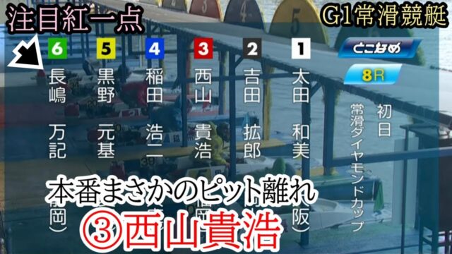 競艇動画 【G1常滑競艇】本番更に内に進入③西山貴浩でどうなる?紅一点⑥長嶋ら出走、注目戦 2023年11月12日 admin_master https://public-gambling-ch.com/wp-content/uploads/2021/09/public-gamble-white.png 公営競技予想まとめ|ギャンブル速報