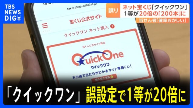 宝くじ 誤設定で1等200本「確率がおかしくないかと思った」 ネット専用宝くじ「クイックワン」で当せん本数を間違えるミス発覚|TBS NEWS DIG 2024年3月6日 admin_master https://public-gambling-ch.com/wp-content/uploads/2021/09/public-gamble-white.png 公営競技予想まとめ|ギャンブル速報
