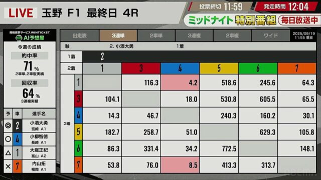 提供:競輪アプリ「WINTICKET」
