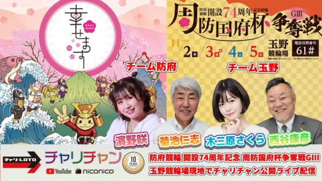 現地公開生放送のチャリチャン@チャリロトは下記よりご視聴ください。