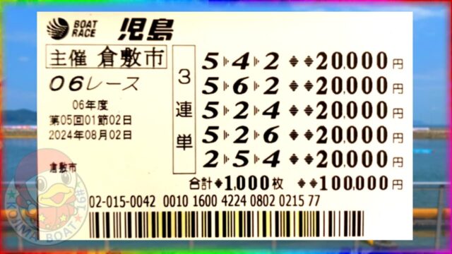 【競艇・ボートレース】児島最終日10万舟が出たからもう余裕でイン逃げ狙うだけ!!「1-23-46」16万ぶっこみ勝負!!