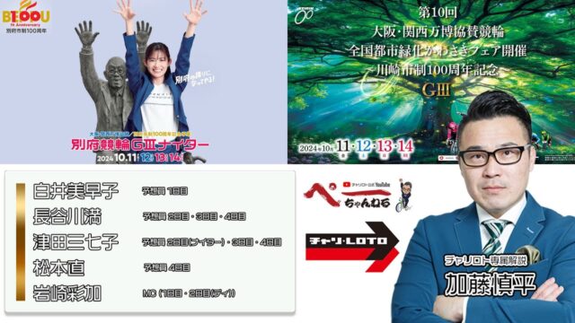 競輪動画 チャリロト公式Youtube 加藤慎平の「ぺーちゃんねる」Vol.324【川崎競輪場】大阪・関西万博協賛[GⅢ]・【別府競輪場】大阪・関西万博協賛[GⅢ] 10/14(月)【決 勝】 2024年10月4日 admin_master https://public-gambling-ch.com/wp-content/uploads/2021/09/public-gamble-white.png 公営競技予想まとめ|ギャンブル速報